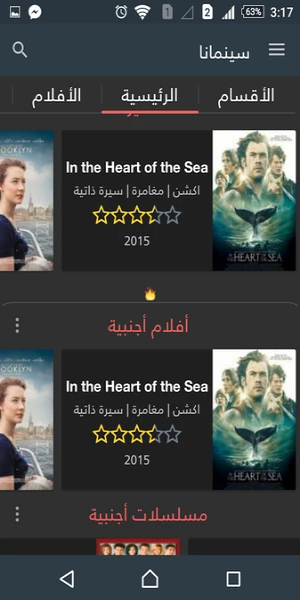 بعد الانتهاء من عملية تثبيت سينمانا على الهاتف وتسجيل الدخول، تظهر الكثير من الأقسام التي يمكن للمستخدم أن يتحرك بينها بدون أي عوائق، وهذه الأقسام تبدو كالتالي: